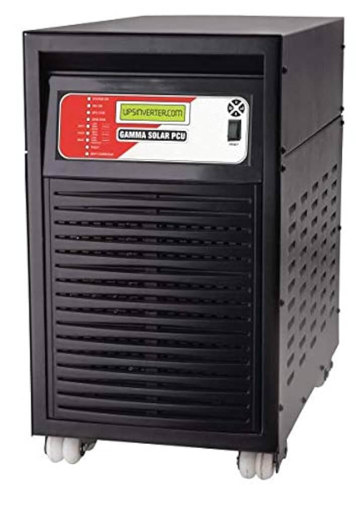 Gamma PCU is a Solar Power Conditioning Unit (PCU) which uses Solar energy (primary) and also the power from grid (secondary), to charge the batteries. Since usage of power from grid is secondary, grid power is only used when solar energy is not present and battery voltage level reduces to a certain level. Grid power is also needed when solar power is reduced to a certain level and battery voltage is reduced to a certain level.